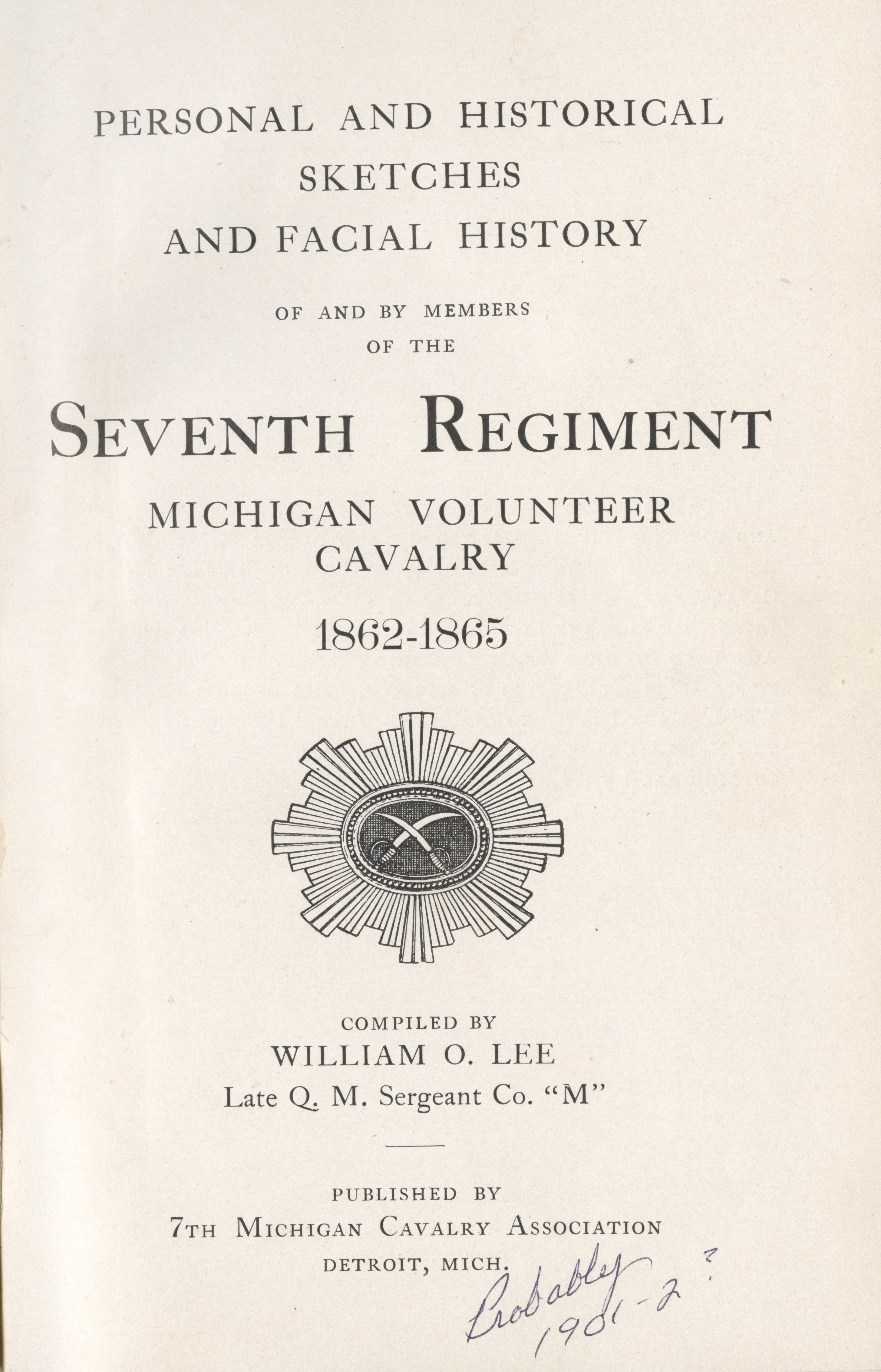 Personal and historical sketches and facial history of and by members of the Seventh Regiment, Michigan Volunteer Cavalry, 1862-1865 by William O. Lee