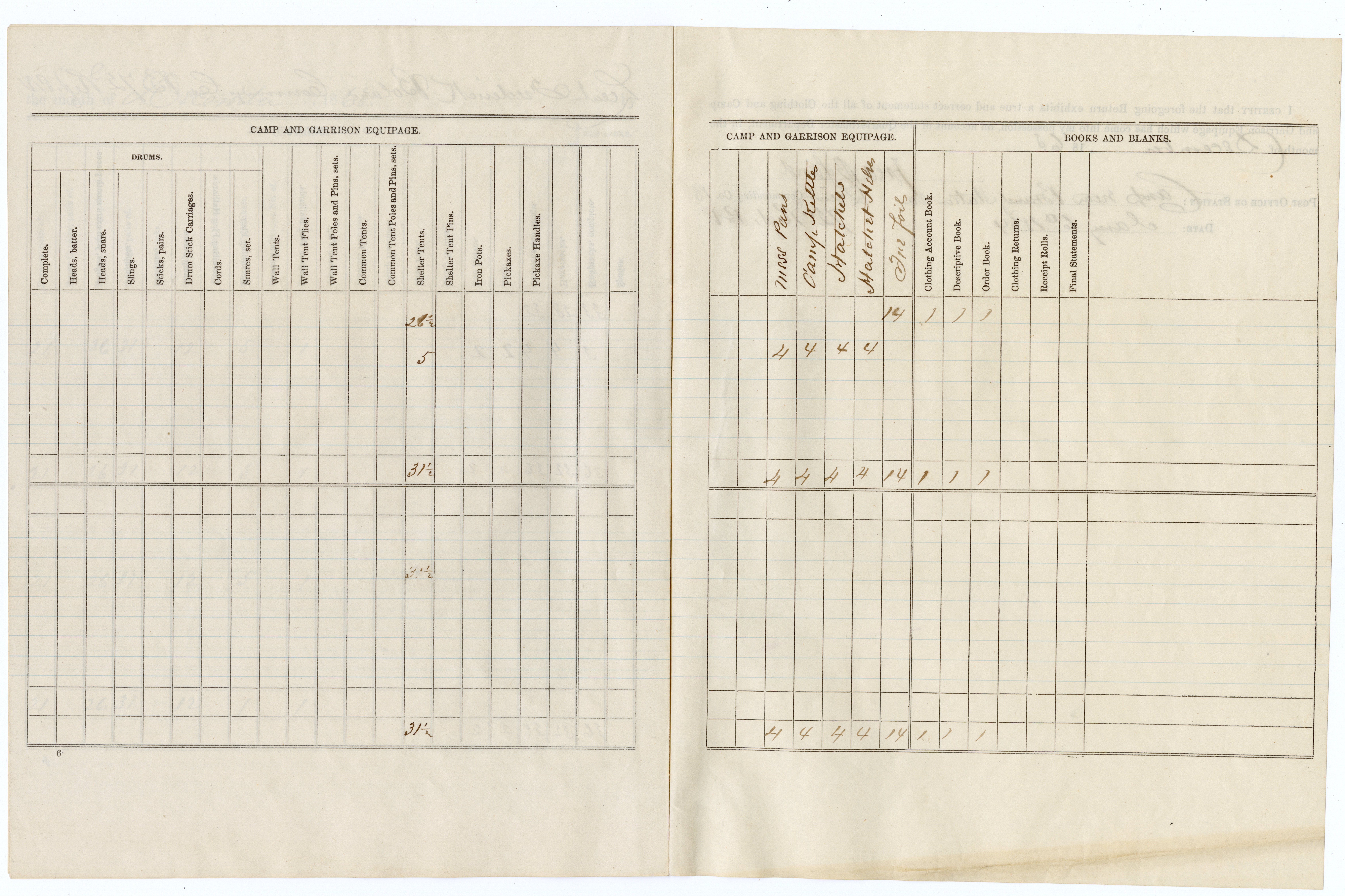 Original Civil War period document: Form No. 51, Monthly Return for Clothing, Camp and Garrison Equipage (8 pages) for Company B, 72nd Pennsylvania Infantry. Document is signed by Lieutenant Frederick Boland. Boland was wounded 4 times during his military service:
