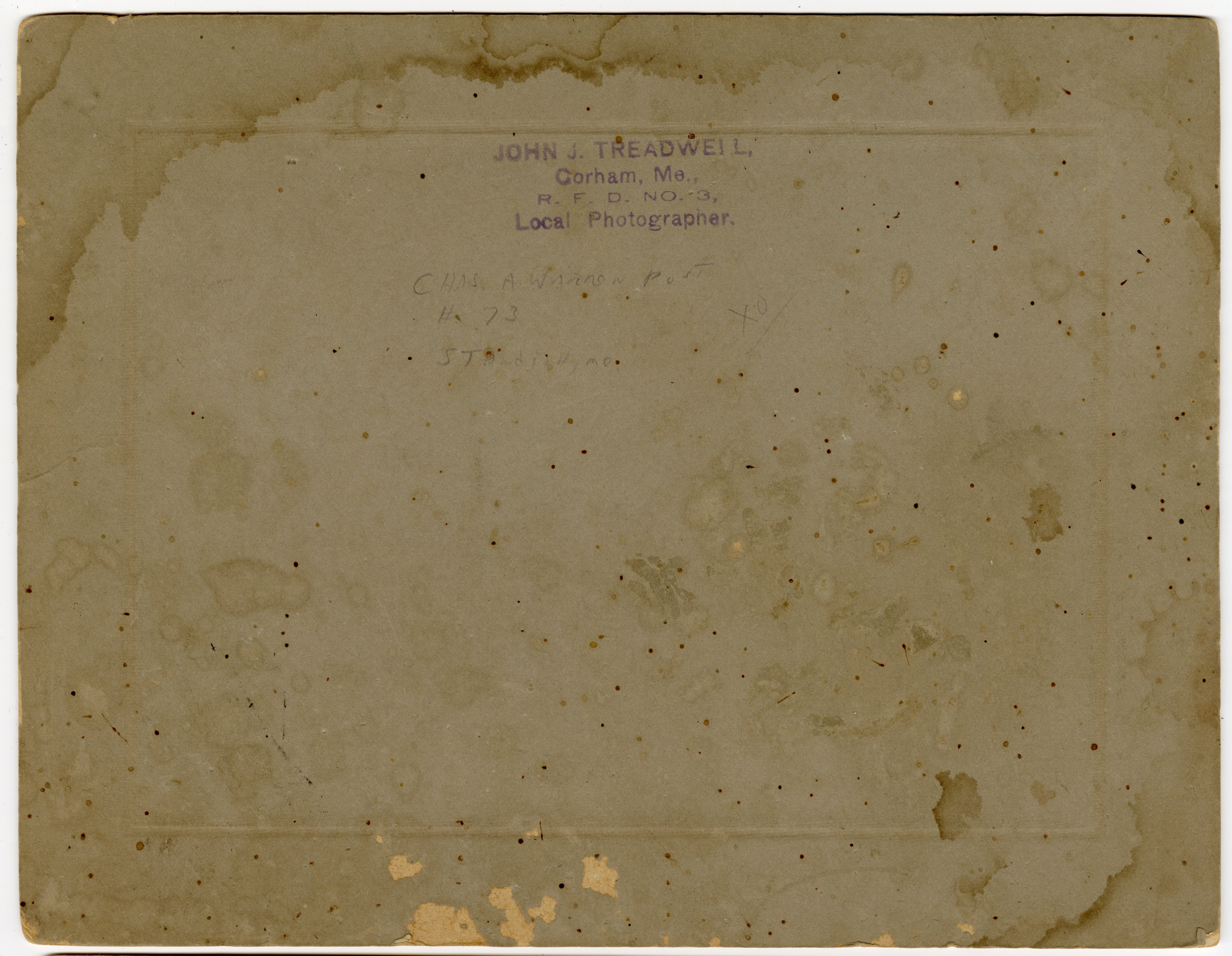 Memorial celebration in Corham, ME with GAR members wearing their badges.