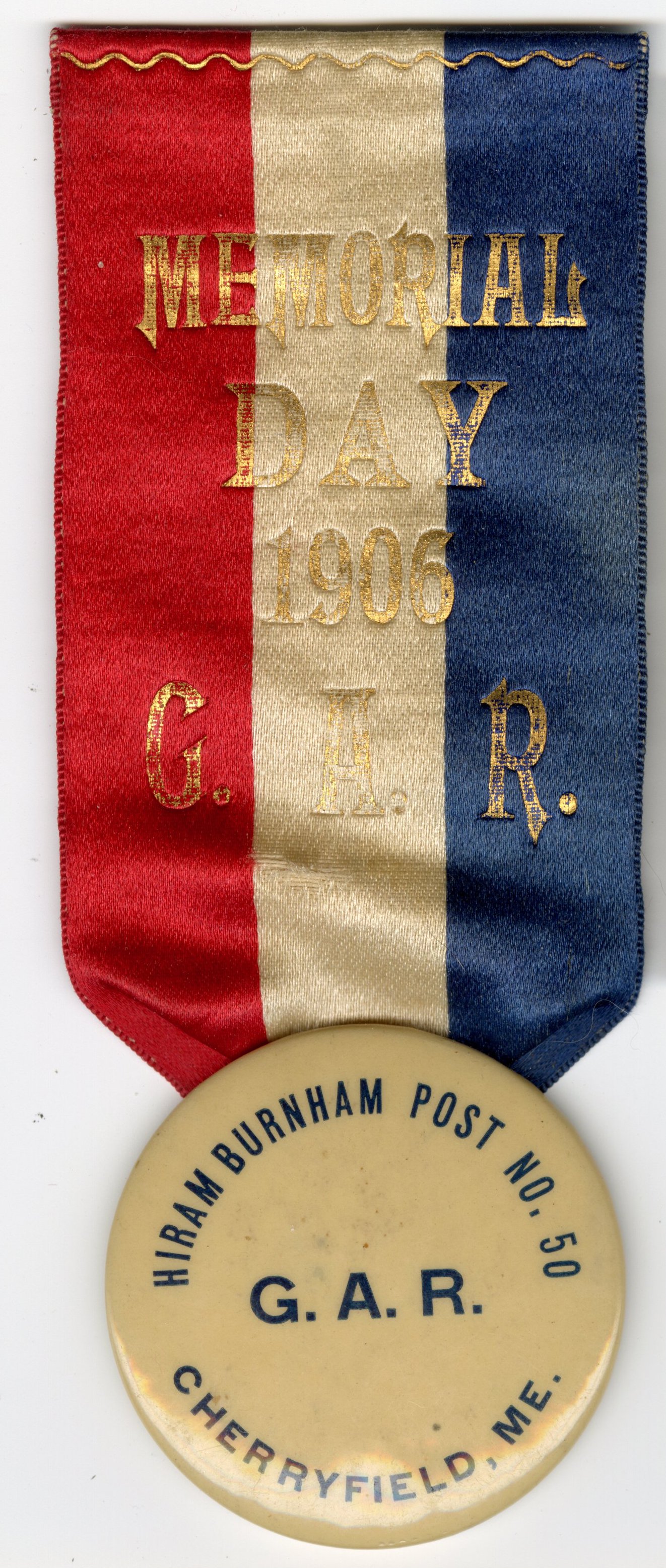 Original GAR Memorial Day badge for 1906 at Cherryfield, ME