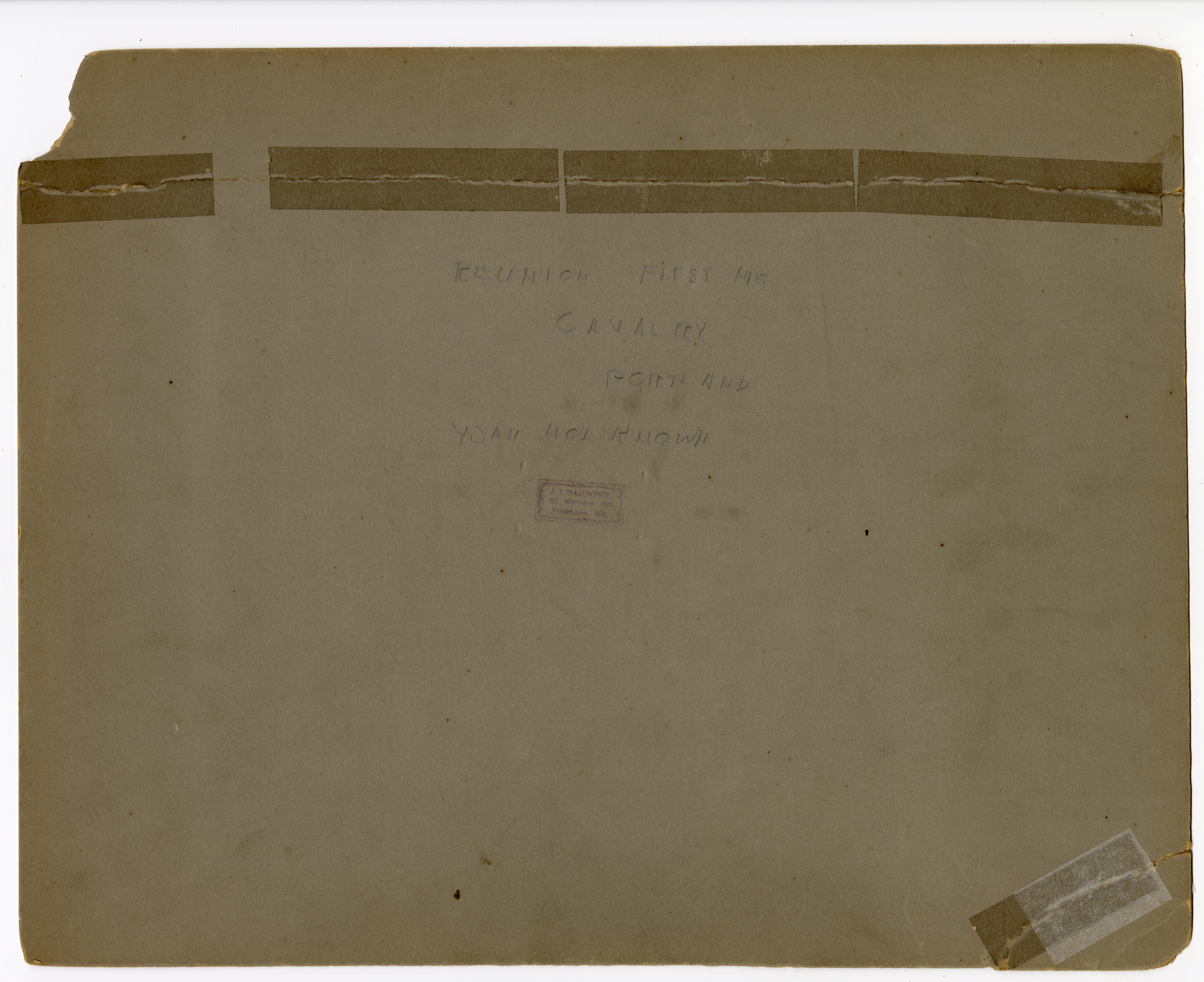 Reunion photograph of members of the 1st Maine Cavalry Regiment. Image was taken at Portland, ME. Images with mat measures: 11 x 14 inches. Albumen measures: 7.5 x 9.5 inches..