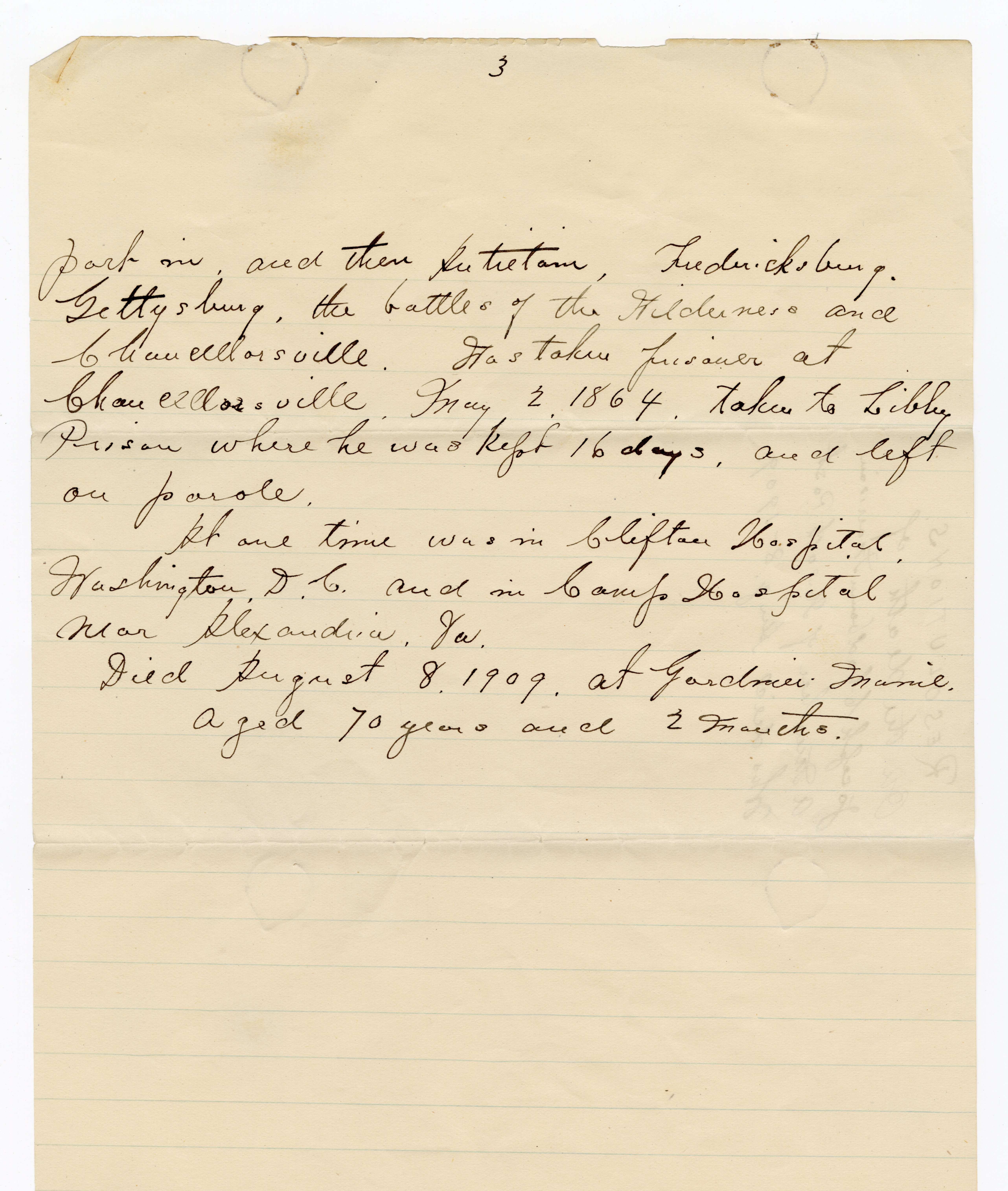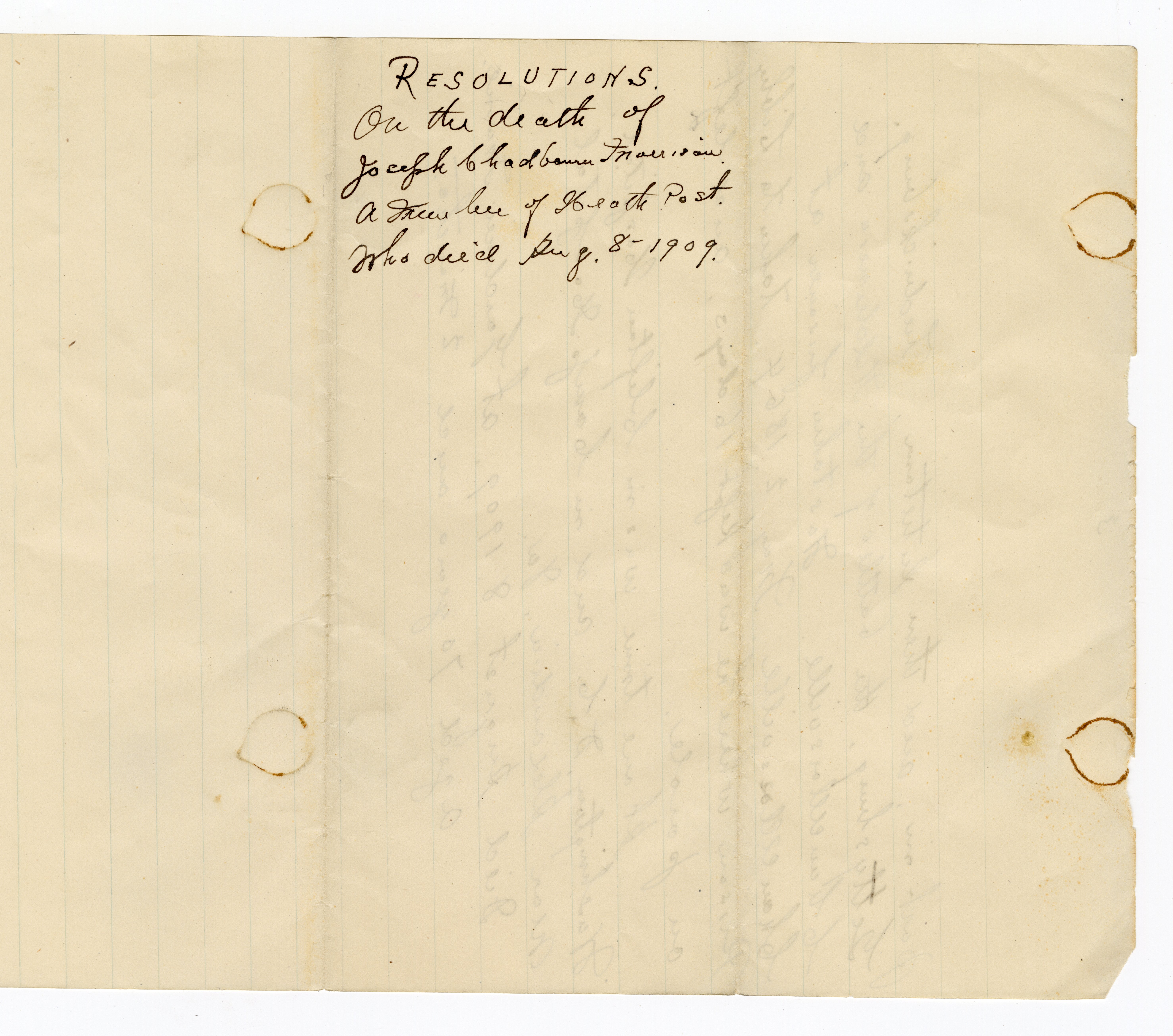 3 page Resolutions concerning the death of Joseph C. Morrison late of the 3rd Maine Infantry. Morrison served at 1st Manassas, Antietam, Fredericksburg, Gettysburg, Wilderness and Chancellorsville (where he was captured and sent to Libby Prison).