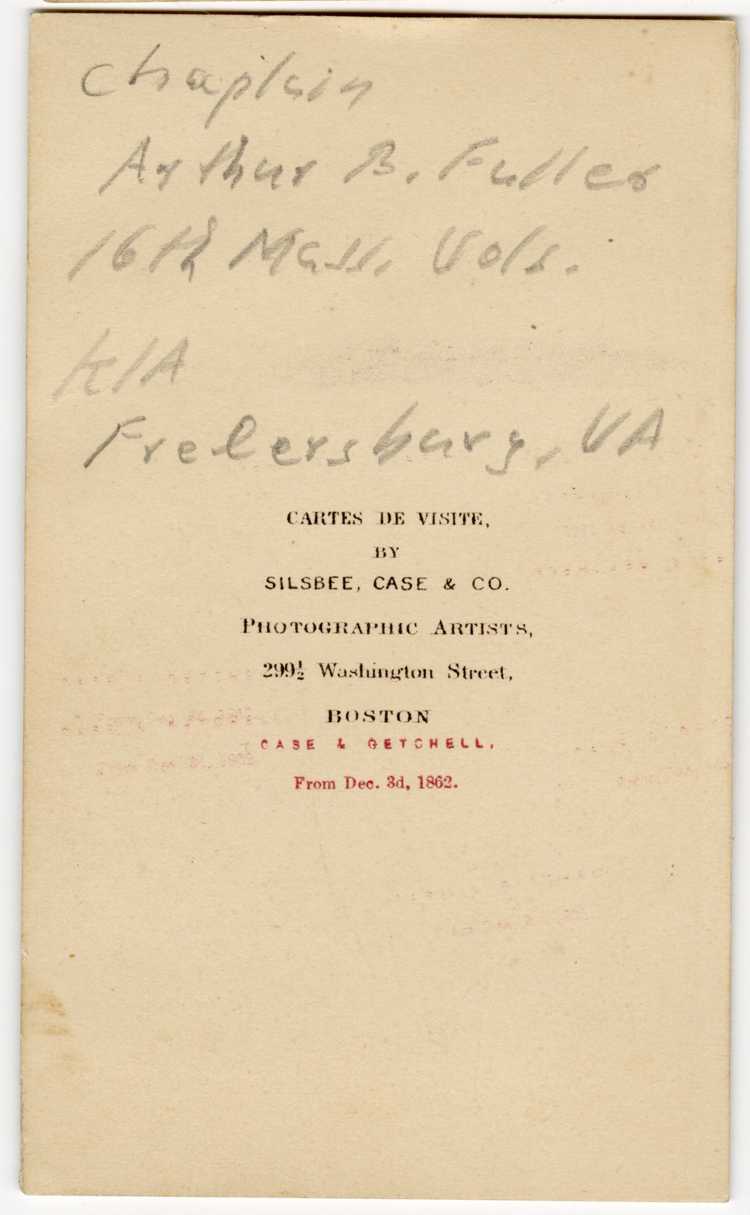 16th & 19th Massachusetts Infantry - Chaplain - Killed at Fredericksburg