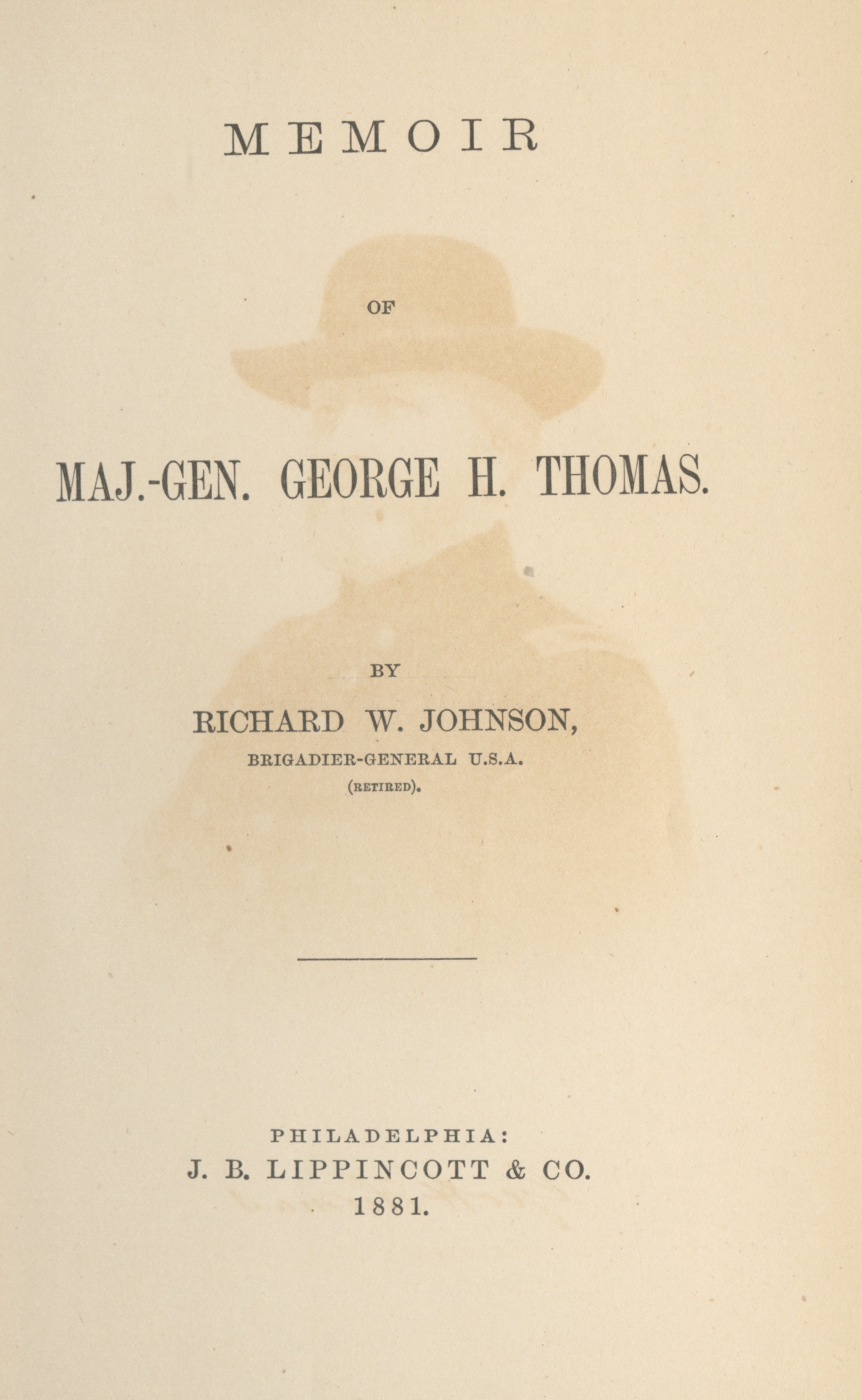 First edition of the biography of Union General George Henry Thomas. Octavo, original cloth, tissue-guarded frontispiece. In very good condition.