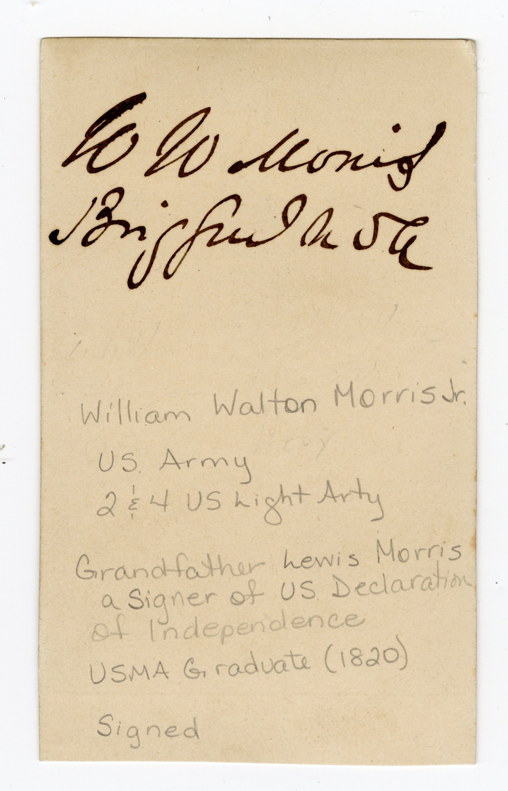 He was appointed as a cadet in the United States Military Academy at West Point, New York, on March 17, 1815, at age fourteen. Morris graduated last out of 30 cadets in the class of 1820.
