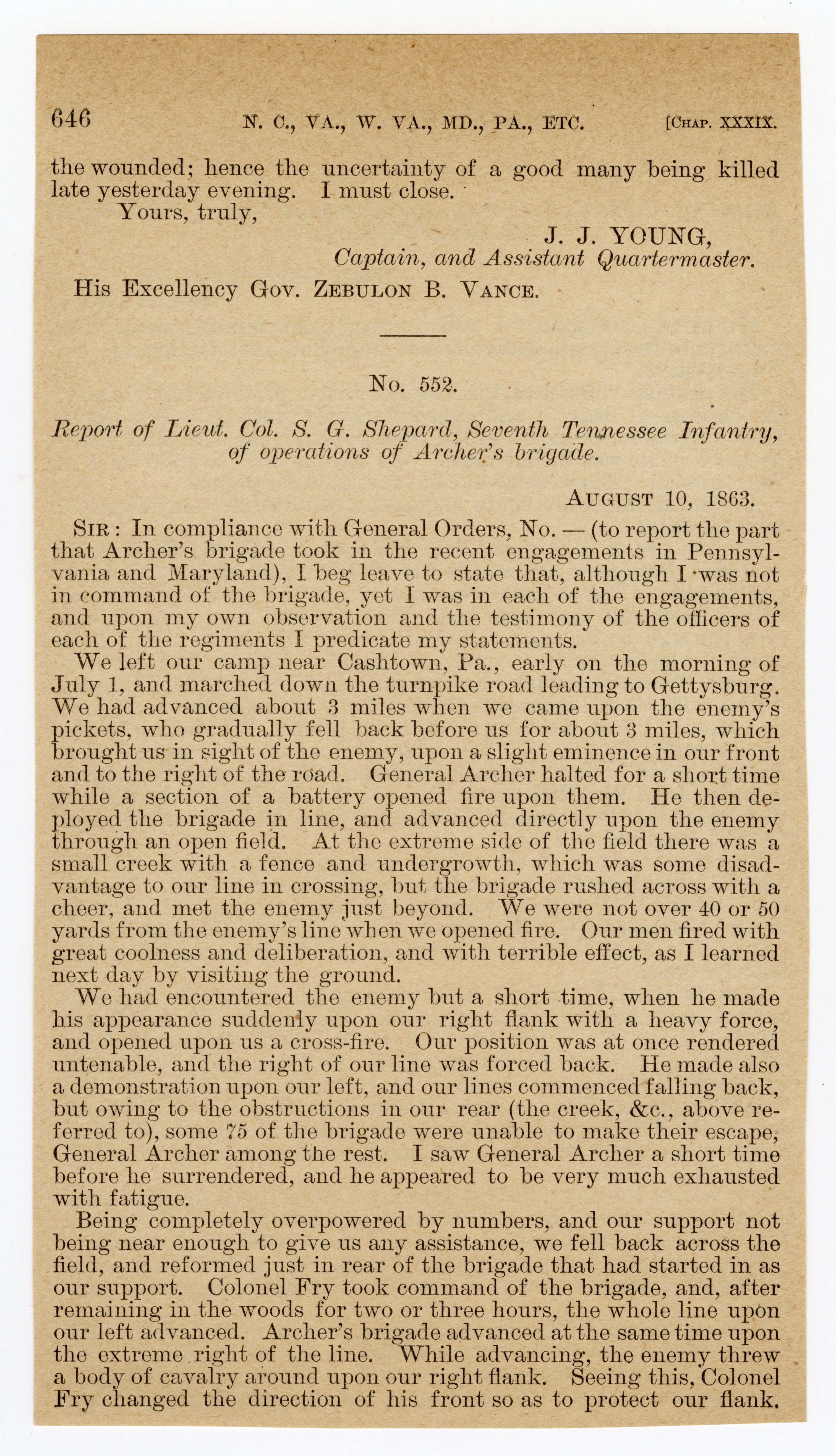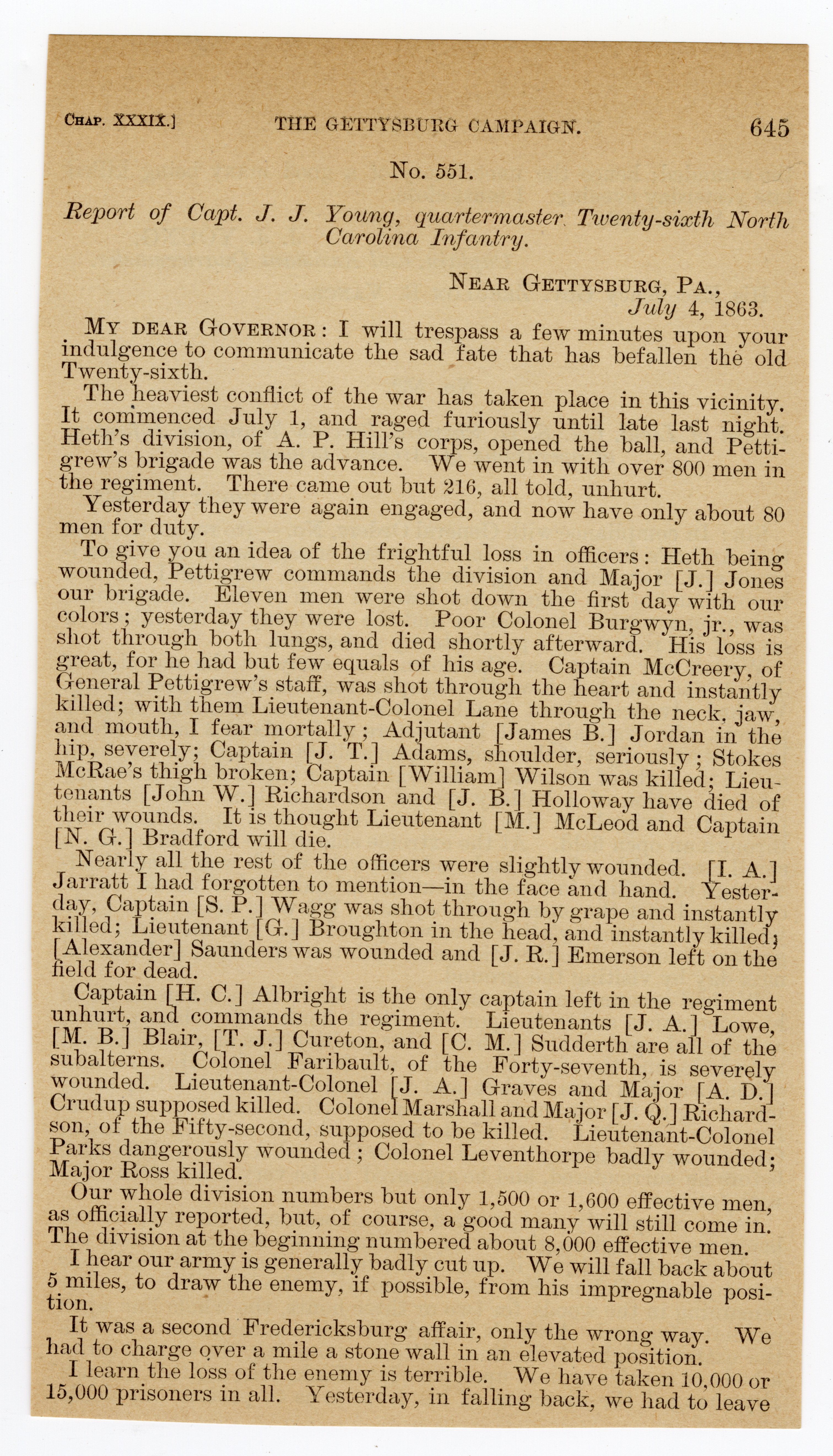 26th North Carolina Infantry - Captured at Gettysburg
