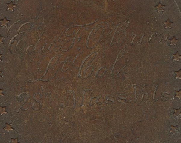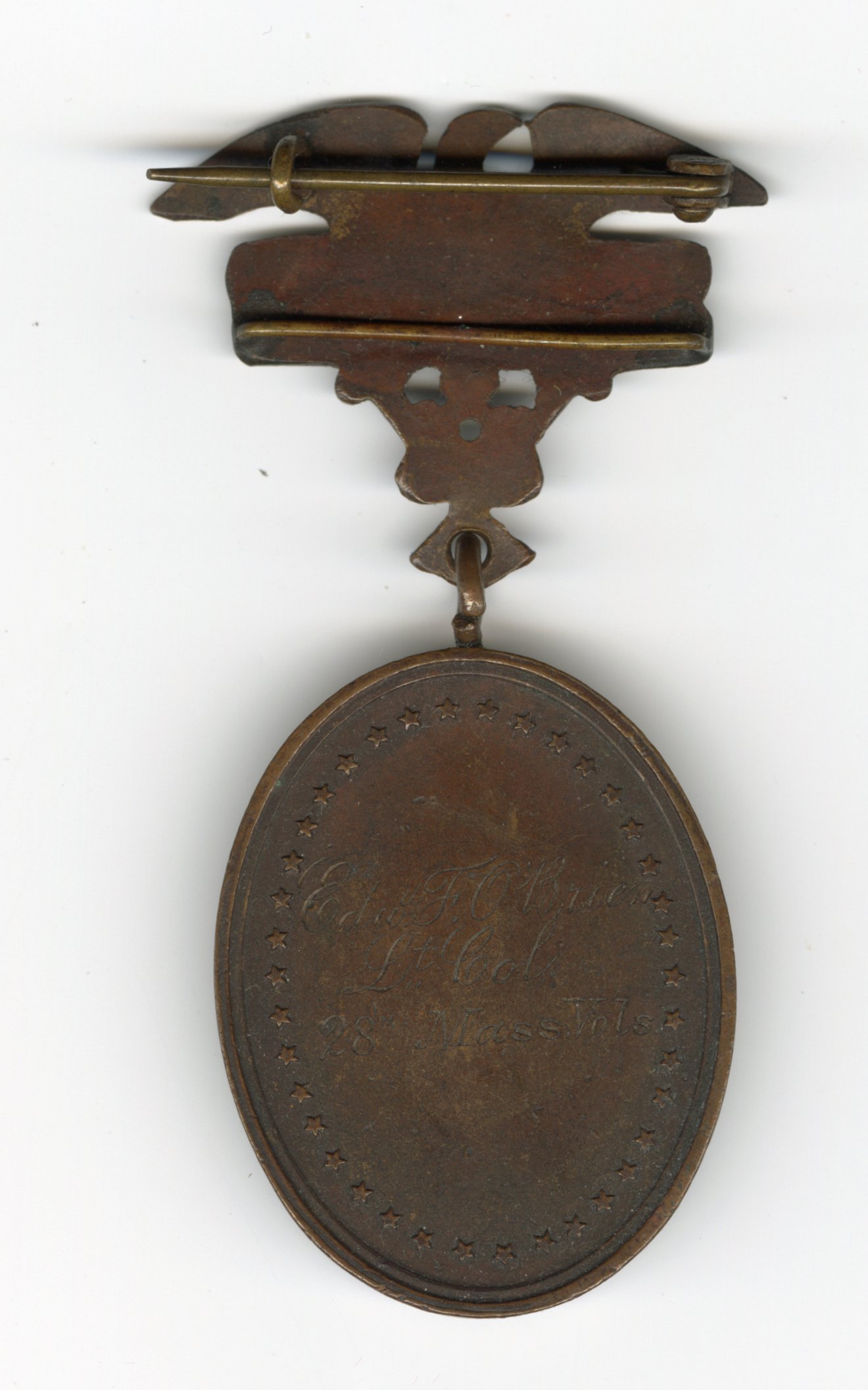 Union Veteran Union Badge engraved to Lieutenant Edward F. O'Brien of the 28th Massachusetts Infantry.