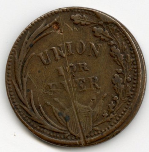 Civil War tokens were privately minted and distributed in the United States between 1861 and 1864. The widespread use of tokens was a result of the scarcity of government-issued cents during the war. On April 22, 1864, the United States Congress passed a law prohibiting tokens or devices for use as currency.